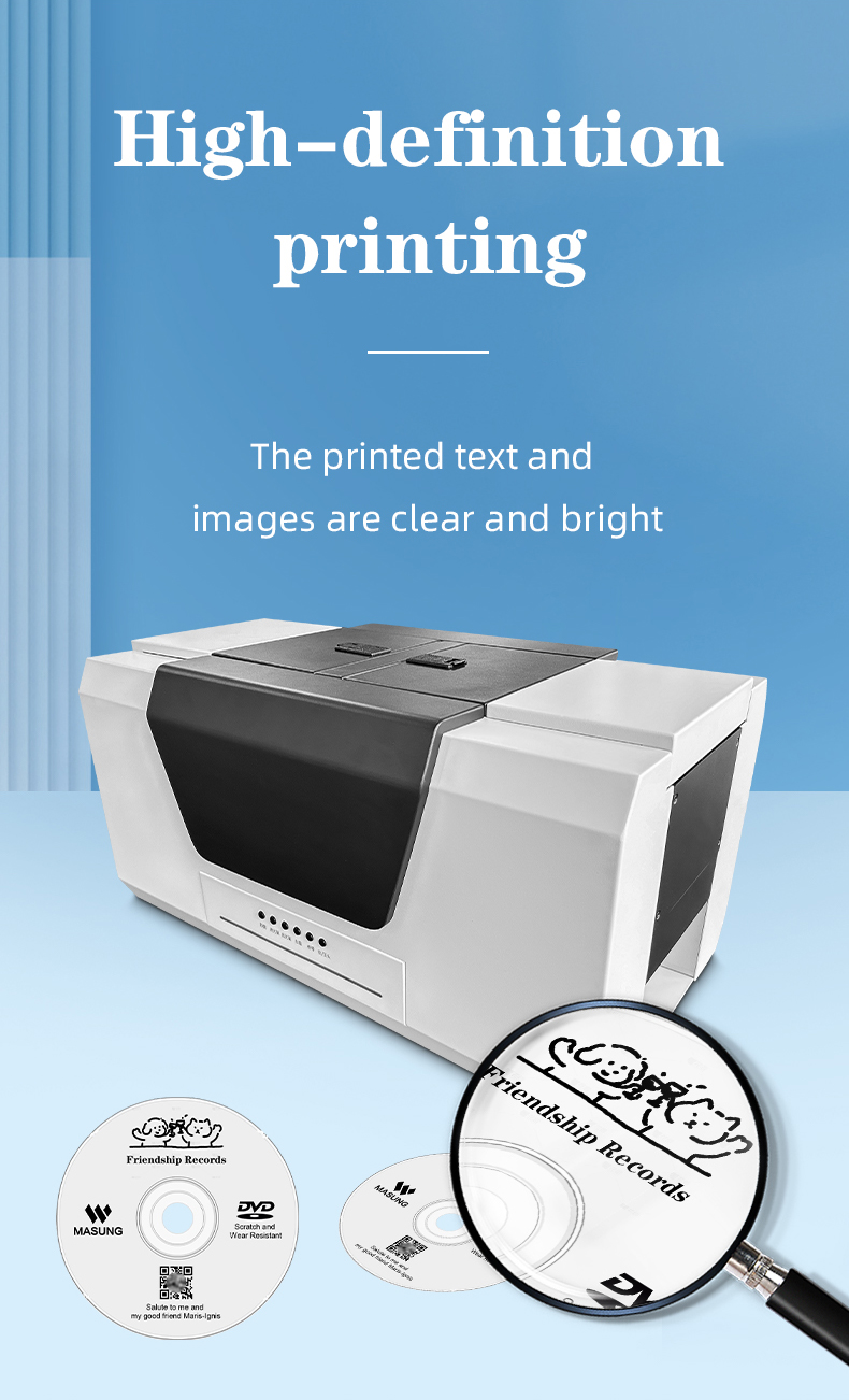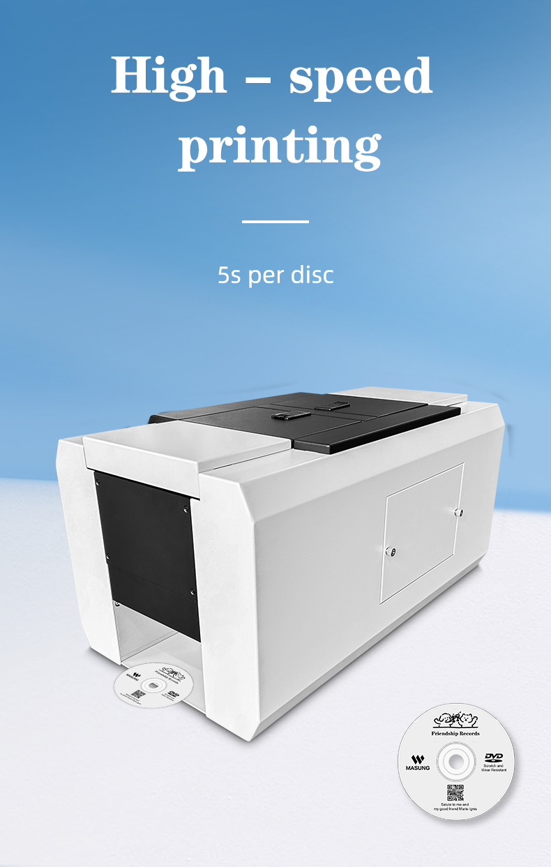 Designed for professional environments, this CD disc printer and disc duplicator supports SDK connections for integration into larger control platforms. It enables custom job creation and remote monitoring, providing a scalable and manageable CD recorder and duplicator solution for automated, high-volume disc production lines.