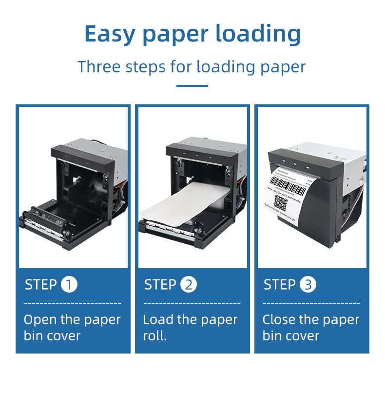 Built for reliability and ease of use, this kiosk receipt printer features multiple opening mechanisms and a reflective photoelectric sensor for precise paper detection and effortless maintenance. With a high printing speed of up to 250 mm/s, it ensures quick transaction times, which is critical for customer-facing terminals. The easy paper loading system and long mechanical life of 100 km further reduce downtime and operational costs.